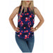 Blaues ärmelloses Top mit rotem und schwarzem Muster