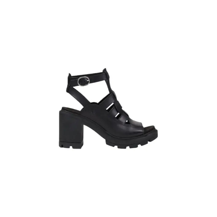 Schwarze Leder Sandale mit offenem Zehenabsatz