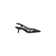 Schwarzer Slingback Absatz mit dekorativen Verzierungen