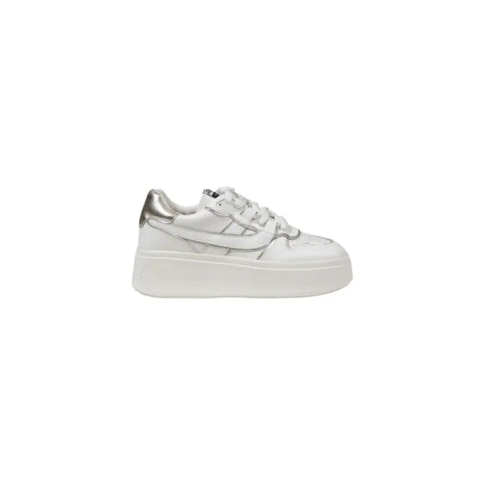 Weiße Plateau-Sneaker mit silbernen Akzenten